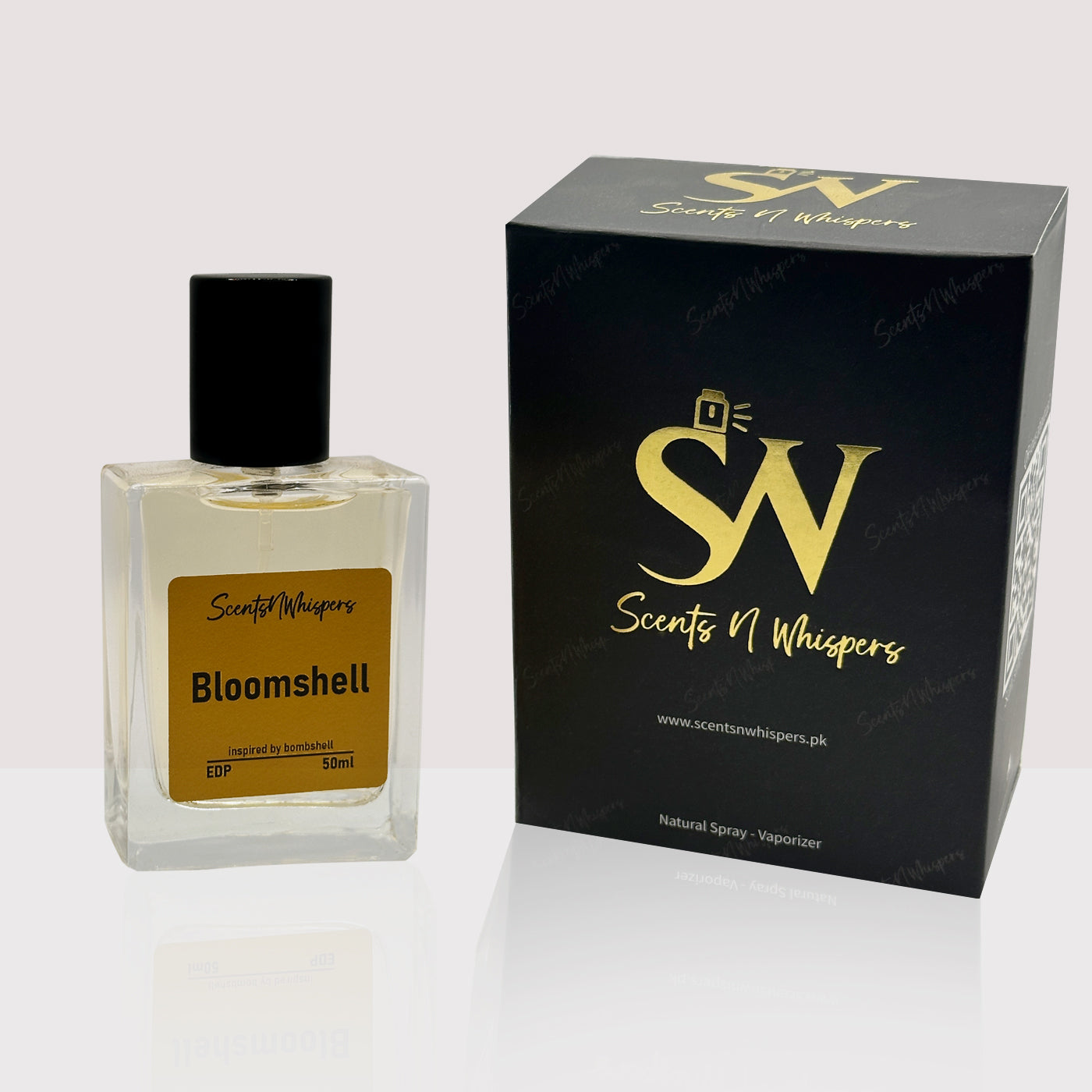Bloomshell Inspired by Bombshell is a vibrant and irresistible floral-fruity fragrance for the confident, playful woman. It opens with a juicy burst of passionfruit, grapefruit, pineapple, tangerine, and strawberry, creating a fresh and uplifting start. The heart blooms with peony, vanilla orchid, red berries, jasmine, and lily-of-the-valley, adding a feminine and romantic touch. Finally, the scent settles into a soft base of musk, woody notes, and oakmoss, leaving a delicate yet lasting impression.